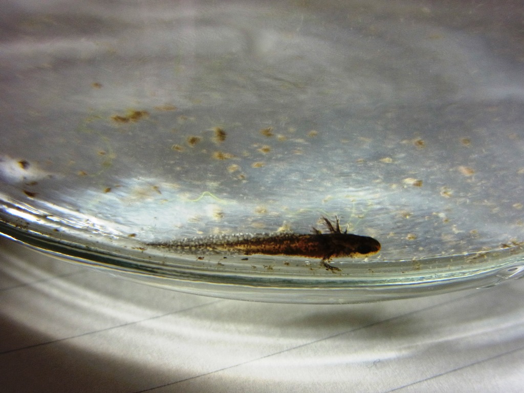 私はこのイモリの幼生を、「イモリジャクシ」と呼んでいます。「イーモールーパー」と悩んだのですが、イモリジャクシのほうがしっくりきました。