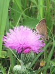 枯木さんを先頭に険しい道をかき分けていくと・・・ゴイシシジミが数頭ひらひらと舞っているエリアに着きました。