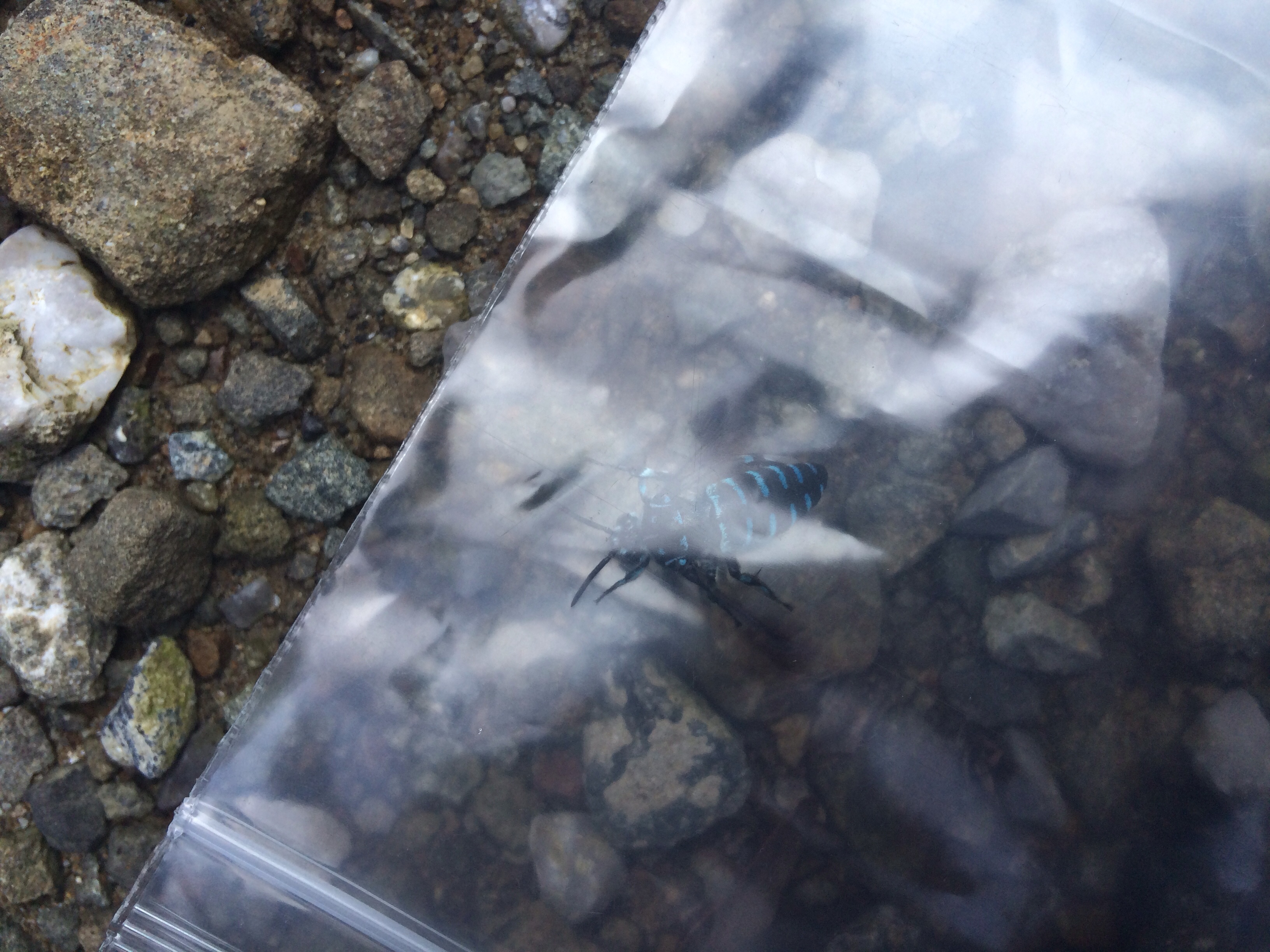 この青いハチは幸せを運ぶハチとして知られていて、県によってはレッドデータブックに載る事もあるそうです。