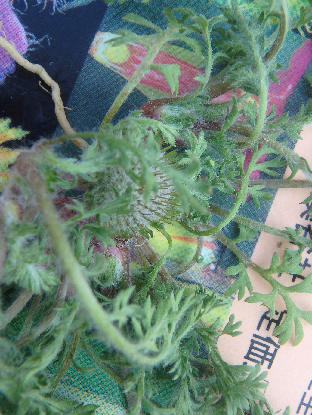 謎の植物です。農家の方から「最近中国の菜種粕を撒いたら変な植物が生えた」という話を聞き見せてもらいました。全く見当もつかず後日先生に尋ねたところ「中東に生えるヨモギの仲間ではないか」ということでした。菜種粕に種が混入していたのでしょうね。日本に根付かないといいですが…