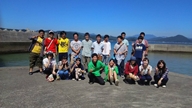 大島に着いて最初に撮った集合写真です。かなり人数が多いですね(´∀`)
