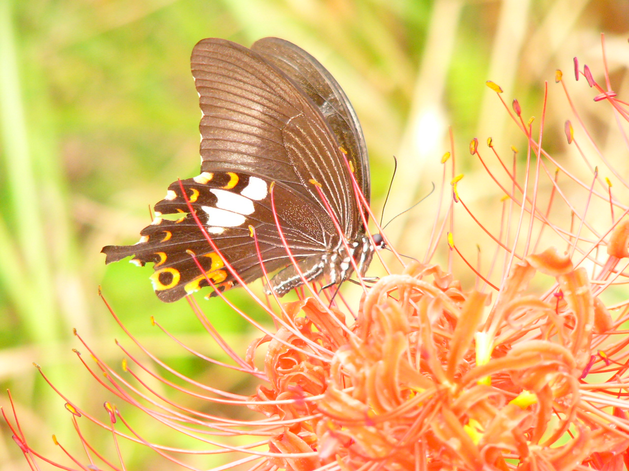 ナガサキアゲハよりは警戒心やや薄いです。飛び立ってもまた同じ花にとまってくれます。
