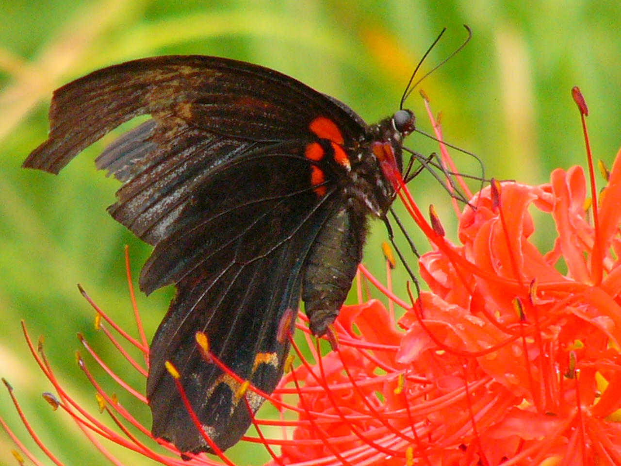 こちらはナミアゲハさん。やはりだいぶくたびれて見えます。色が薄いせいでしょうかね。