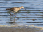 全長21.5㎝。冬羽では茶褐色が少し薄くなり、くびから胸側は淡茶褐色の羽縁が明瞭で背にはV字型の白線がある。類似種のアメリカウズラシギとは胸と腹の境の斑紋が明瞭かどうか(明瞭ならばアメリカウズラシギ)だそうです。図鑑で見る限り、腹の白部分がアメリカウズラシギは広いように感じます。