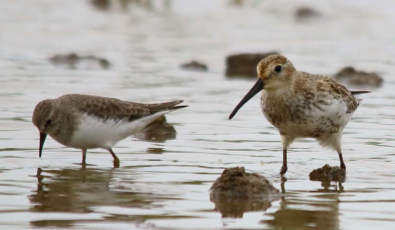 全長17.5㎝。トウネンより少し大きいです(左:オジロトウネン 右:キリアイ)。