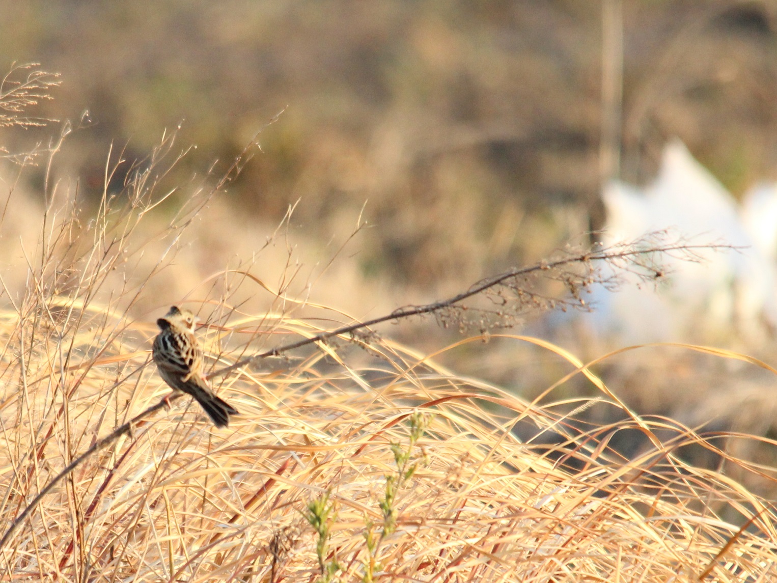 調査地から加江田渓谷に歩いていく道中のみかん畑にてギチギチというモズの声を聞いたので注意したいところである。また、今回は1羽よくわからない個体がいた。雨覆の模様はホオジロのようだが、頬が白くなく、飛んだ際に腹が白い鳥であった。その個体の写真を下にのせた。