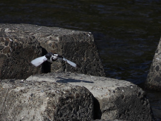 ハクセキレイ(上写真)とセグロセキレイ(下写真)が混ざって飛んでいました。