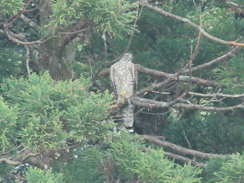 ハイタカ類は木のてっぺんには停まらず、なかほどに潜み獲物を狙うため発見しにくい。