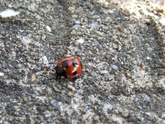 キタキチョウらしき蝶が2.3匹とハムシが2匹、ナナホシテントウが1匹でした。