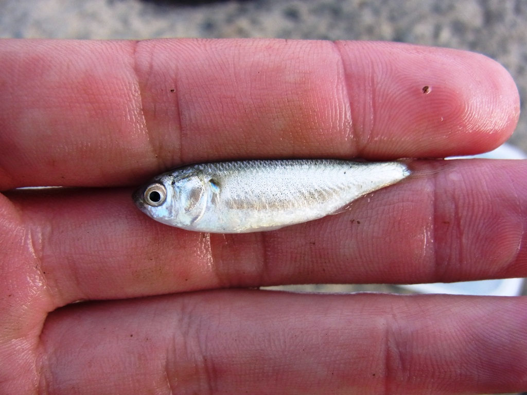 まず、おたまじゃくしがうじゃうじゃでした。上から見ることができた小魚の群れは、ボラの稚魚だったみたいです。
